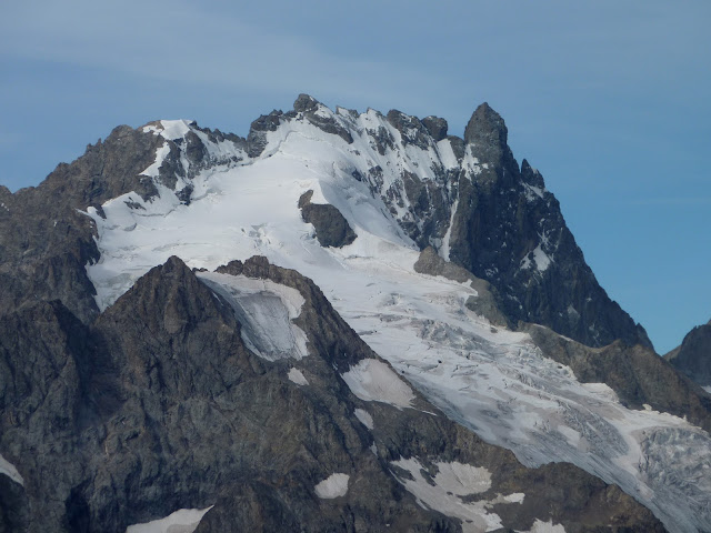 Després de fer unes fotos al cim i contemplar el massís dels Ecrins inicio la baixada pel mateix camí de pujada fins a arribar al cotxe on ja m'està esperant l'Irene per esmorzar, ja que aquest cim està molt a prop del cotxe. A veure si el temps aguanta el proper cap de setmana i aixi poder ajudar a la Carme a acabar alguns dels tresmils que li falten per acabar els 212.